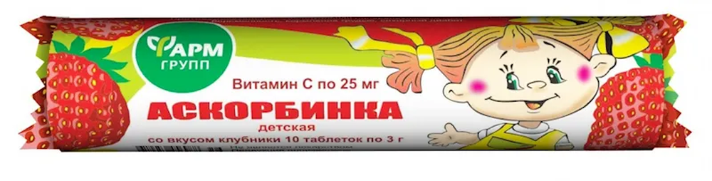 "ASKORBINKA" STRAWBERRY TASTE 25GR $0.89/30PC