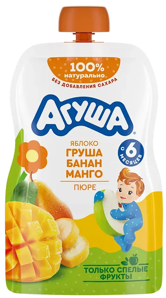 "AGUSHA" APPLE-PEAR-BANANA-MANGO PUREE 90GR $1.40/10PC