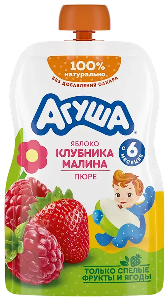"AGUSHA" APPLE-STRAWBERRY-RASPBERRY PUREE 90GR $1.40/10PC