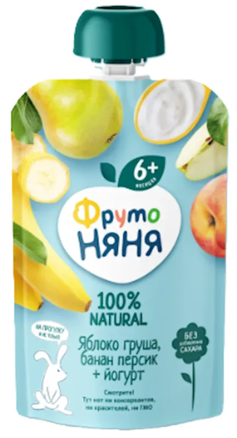 43000253 "FRUTO-NYANYA" PUREE APPLE - PEAR - BANANA-PEACH W/YOGURT 90GR $1.35/12PC