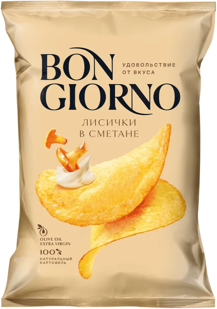 "BON GIORNO" POTATO CHIPS CHANTERELLES IN SOUR CREAM FLAVOR 80GR $1.65/24PC