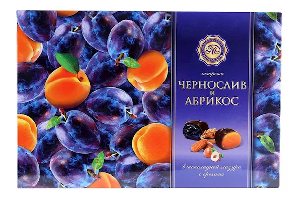 "MIKAELLO" PRUNE & APRICOT W/NUTS IN CHOCOLATE 220GR $6.35/5PC