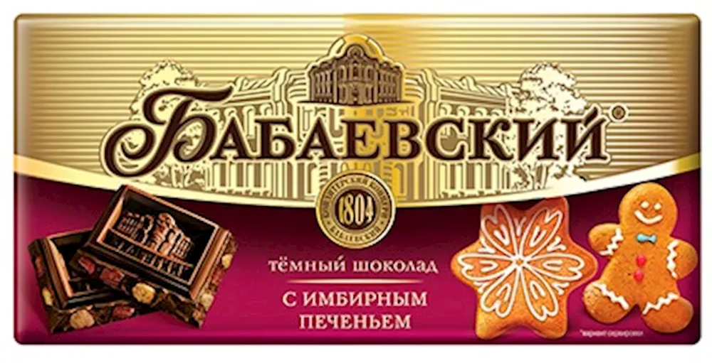 "BABAEVSKIY" DARK CHOC. W/GINGER COOKIES 75GR $1.95/18PC (72PC)