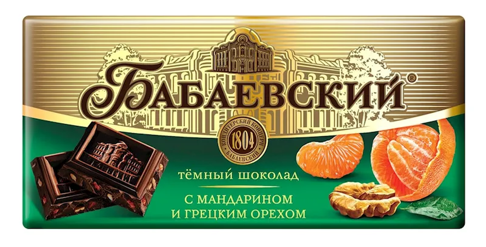 "BABAEVSKIY" DARK CHOC. W/MANDARIN & WALNUT 90GR $2.55/17PC (68PC)