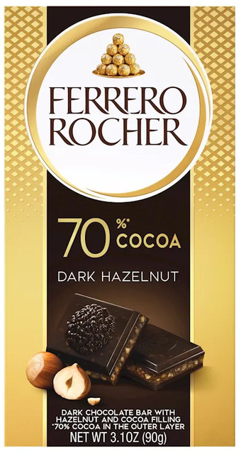 5301 "FERRERO ROCHER" 70% DARK CHOCOLATE W/HAZELNUT 90GR $3.25/8PC N/D