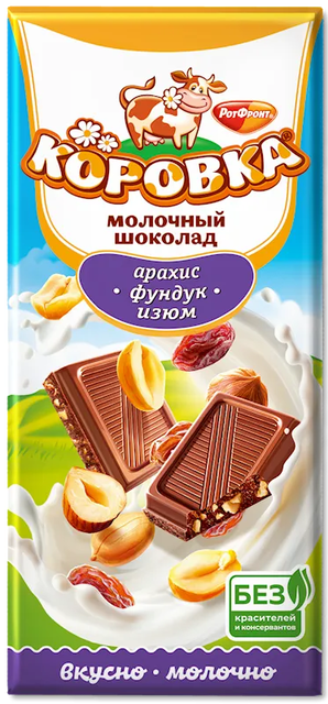 "KOROVKA" MILK CHOCOLATE W/PEANUT HAZELNUT & RAISIN 75GR $1.75/32PC (96)
