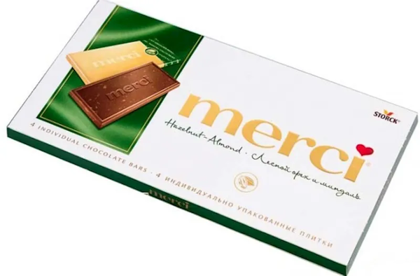 "MERCI" MILK CHOCOLATE W/HAZENLUT & ALMOND 100GR $2.95/15PC