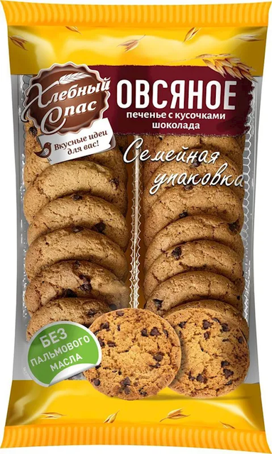 "HLEBNIY SPAS" OATMEAL COOKIES W/CHOCOLATE 500GR $3.70/6PC