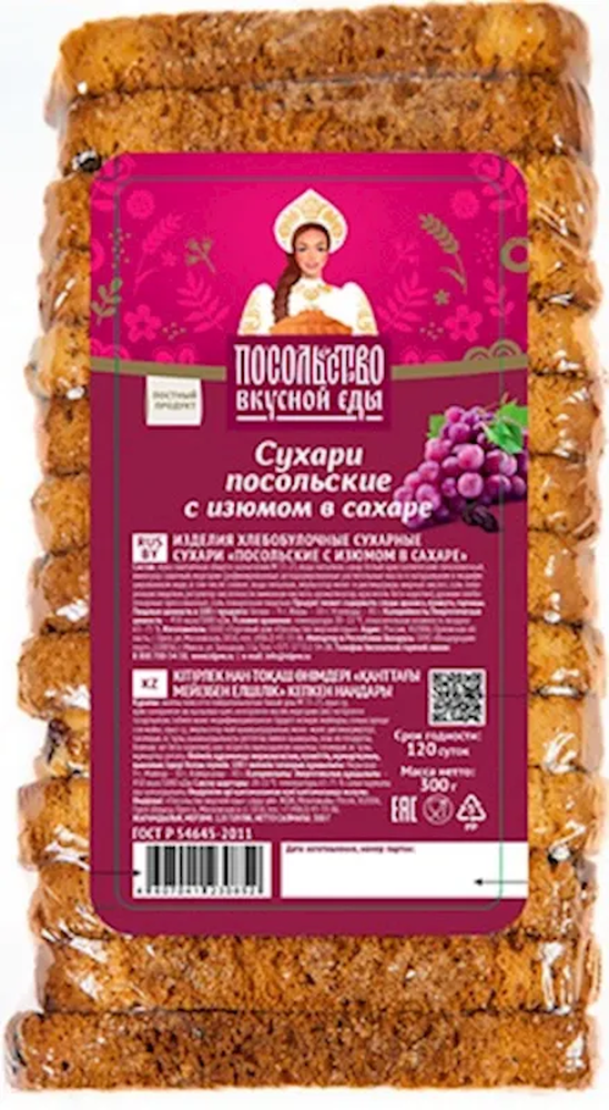 "POSOLSTVO VKUSNOY EDY" SUHARY RAISIN W/SUGAR 300GR $2.05/20PC