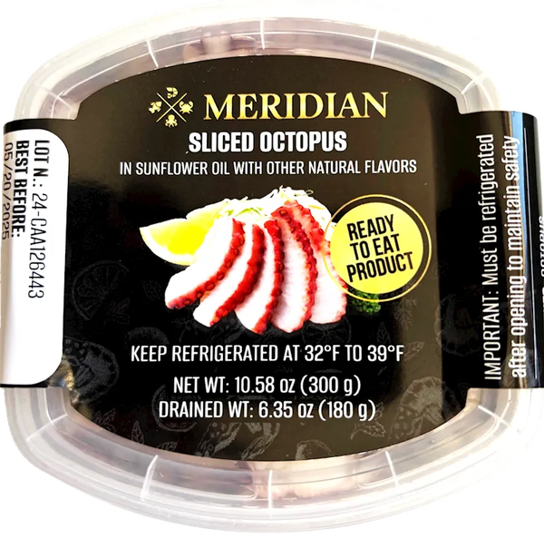 "MERIDIAN" OCTOPUS CARPACCIO IN OIL 300GR $14.45/12PC N/D