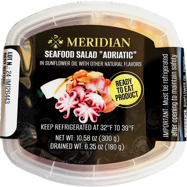 "MERIDIAN" SEAFOOD MIX ADRIATIC IN OIL 300GR $7.95/12PC N/D