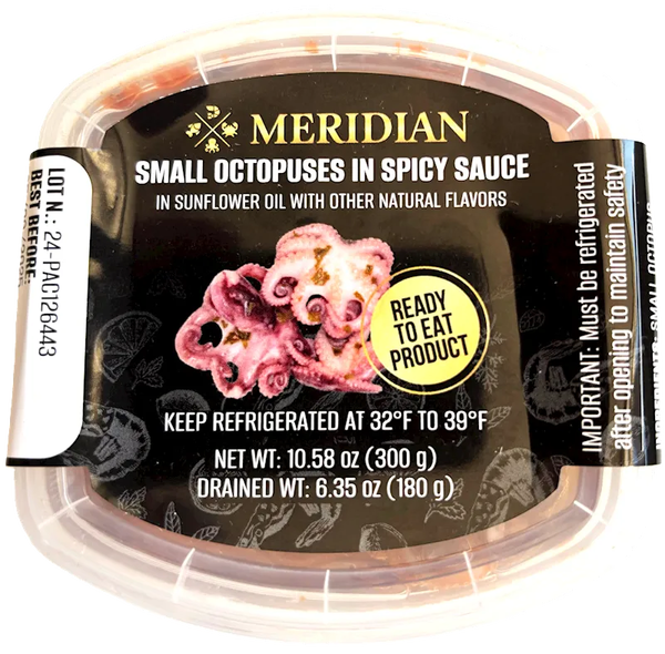 "MERIDIAN" SMALL OCTOPUSES IN SPICY SAUCE 300GR $9.85/12PC N/D