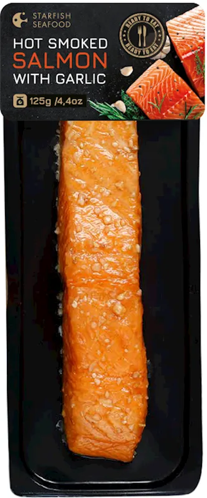 043 "STARFISH" HOT SMOKED SALMON FILLET W/GARLIC 125GR $5.25/8PC N/D