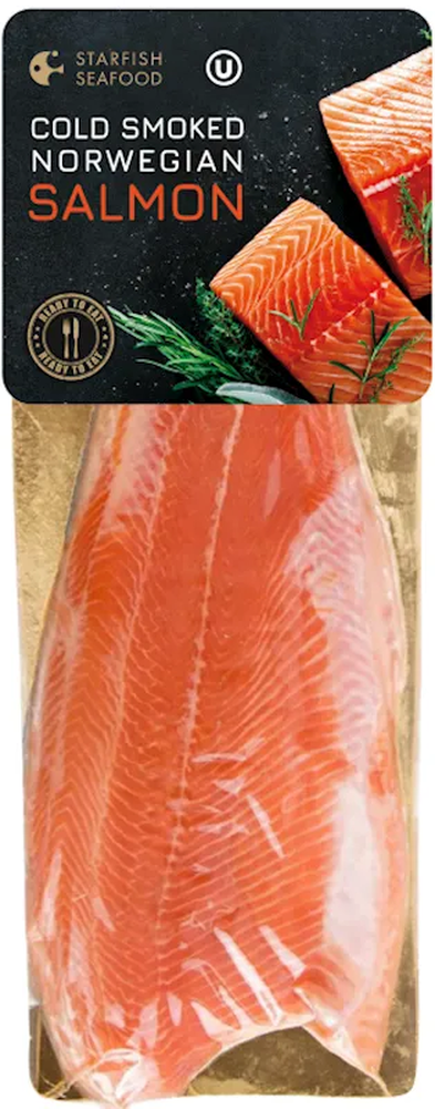 027 "STARFISH" COLD SMOKED UNSLICED SALMON FILLET (800-1100GR) $17.95/LB N/D