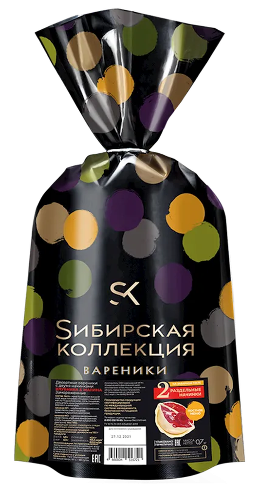 "SIBIRSKAYA KOLLEKCIYA" (black) FROZEN VARENIKI W/STRAWBERRY & RASPBERRY 700GR $4.95/8PC