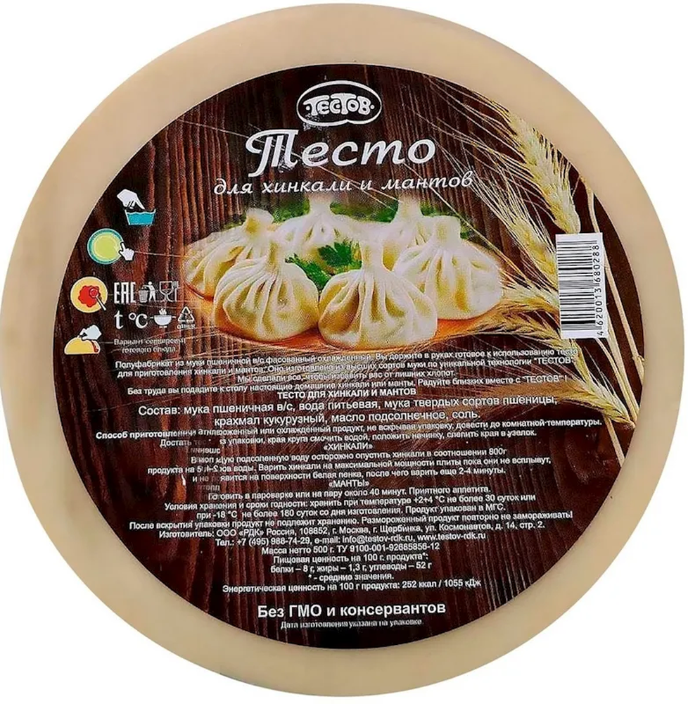 "TESTOV" FROZEN DOUGH FOR HINKALY & MANTY 500GR $2.75/8PC