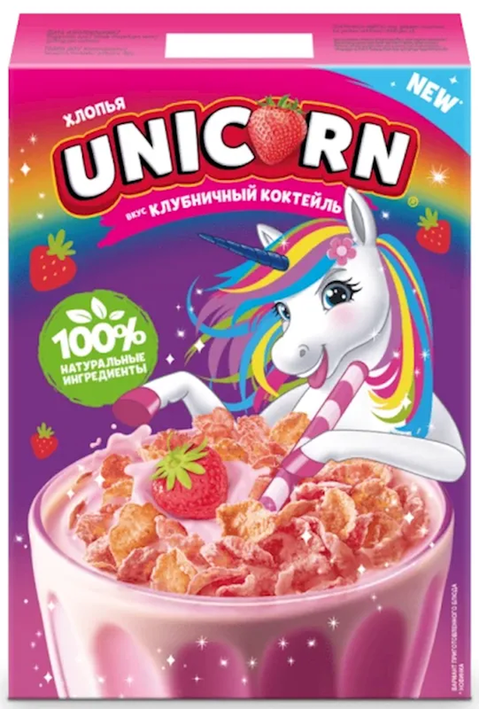 "UNICORN" CORN FLAKES STRAWBERRY COCTAIL 220GR $1.90/7PC