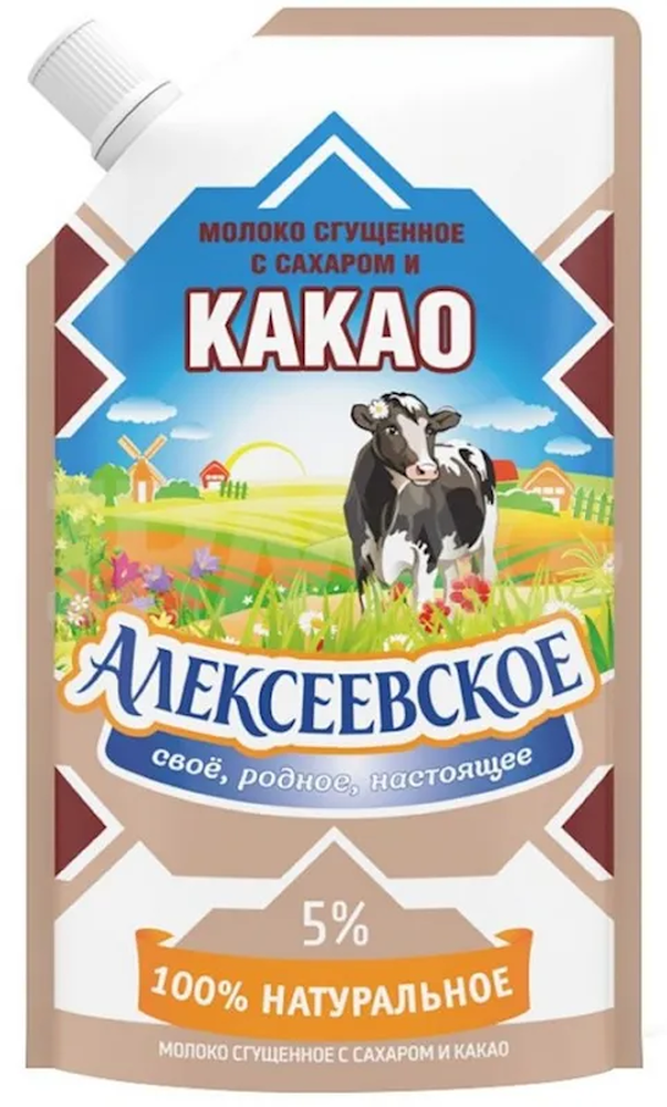 "ALEKSEEVSKOE" COND. MILK W COCOA 5% 270GR $2.85/24PC N/D