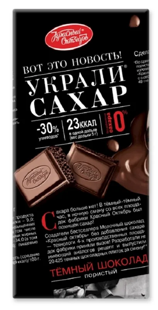 "KRASNIY OKTYABR" SUGAR FREE AIRATED DARK CHOCOLATE 75GR $2.55/20PC