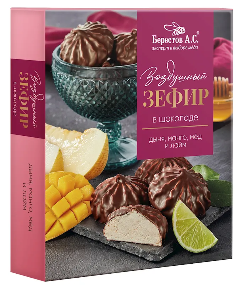 "BERESTOV" ZEPHIR IN CHOCOLATE MELON, MANGO, LIME 155GR $3.65/10PC