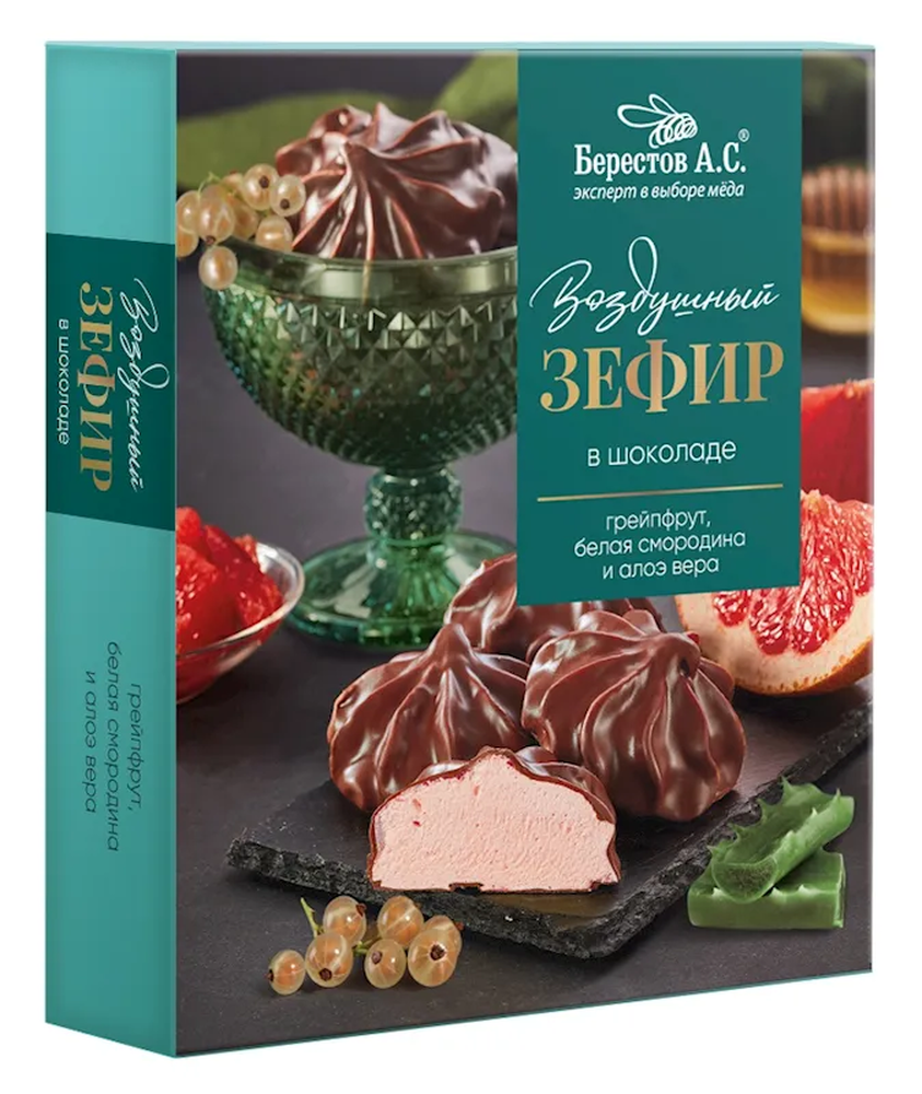 "BERESTOV" ZEPHIR IN CHOCOLATE GRAPEFRUIT-WHITE CURRANT-ALOE VERA 155GR $3.65/10PC