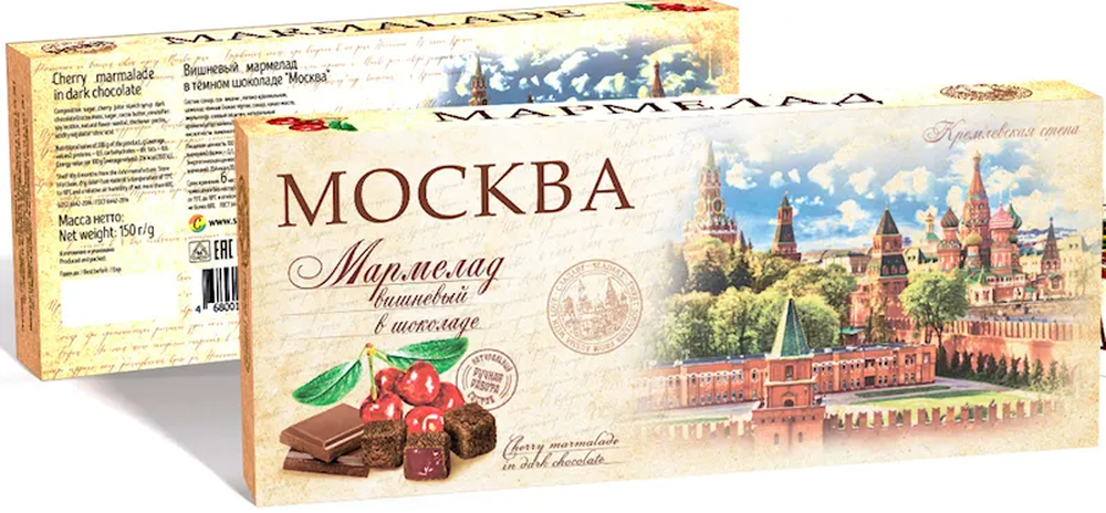 "SLADART MOSCOW" CHERRY MARMALADE IN DARK CHOCOLATE 150GR $2.99/18PC