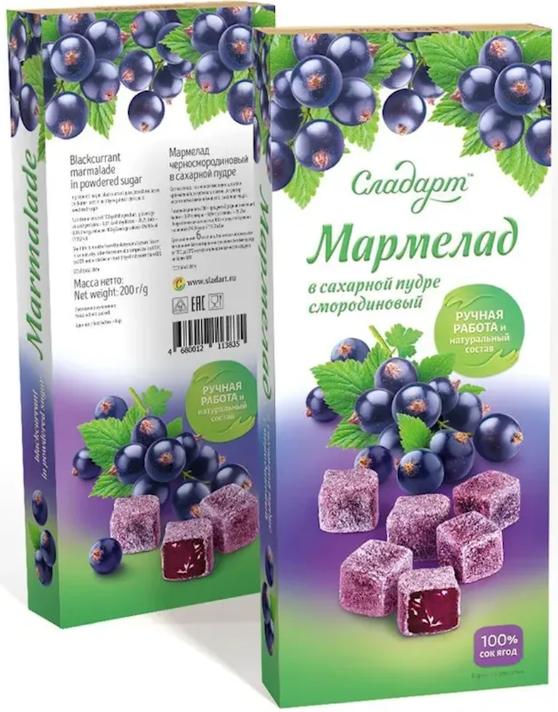 "SLADART BLACK CURRANT MARMALADE IN SUGAR POWDER 200GR $2.99/18PC