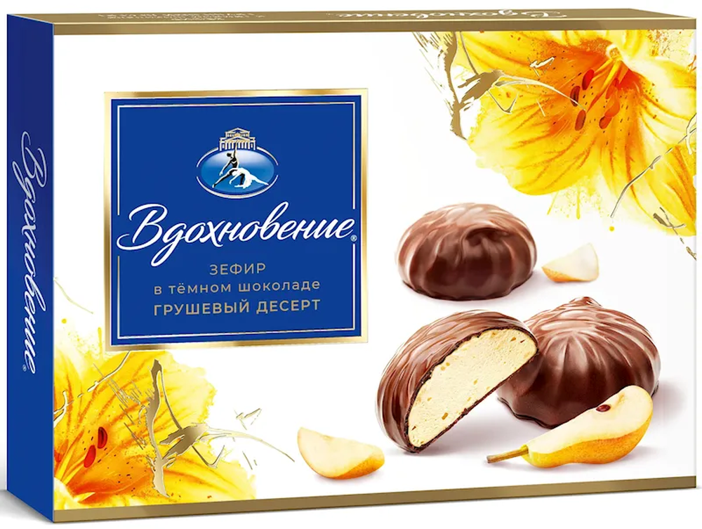 "VDOHNOVENIE" ZEPHIR PEAR DESSERT IN DARK CHOC. 200GR $4.15/6PC
